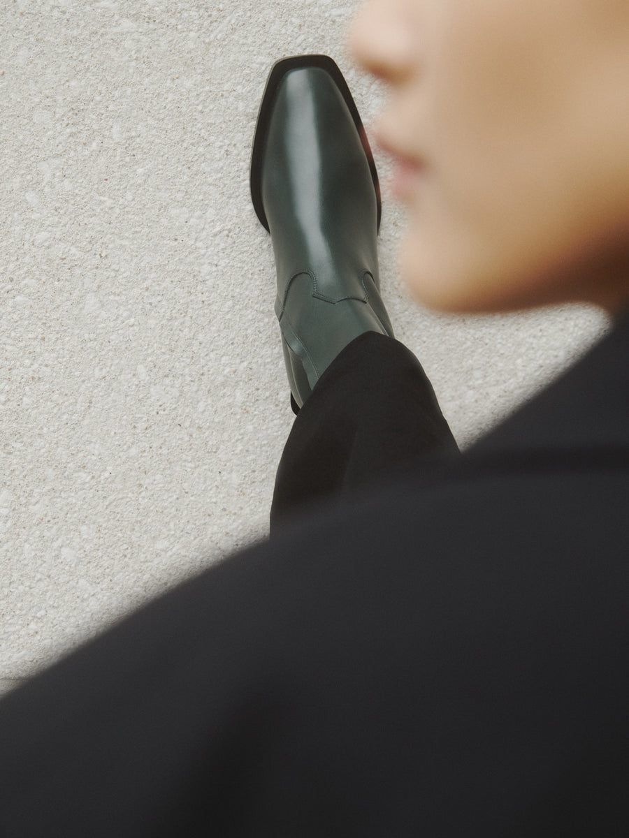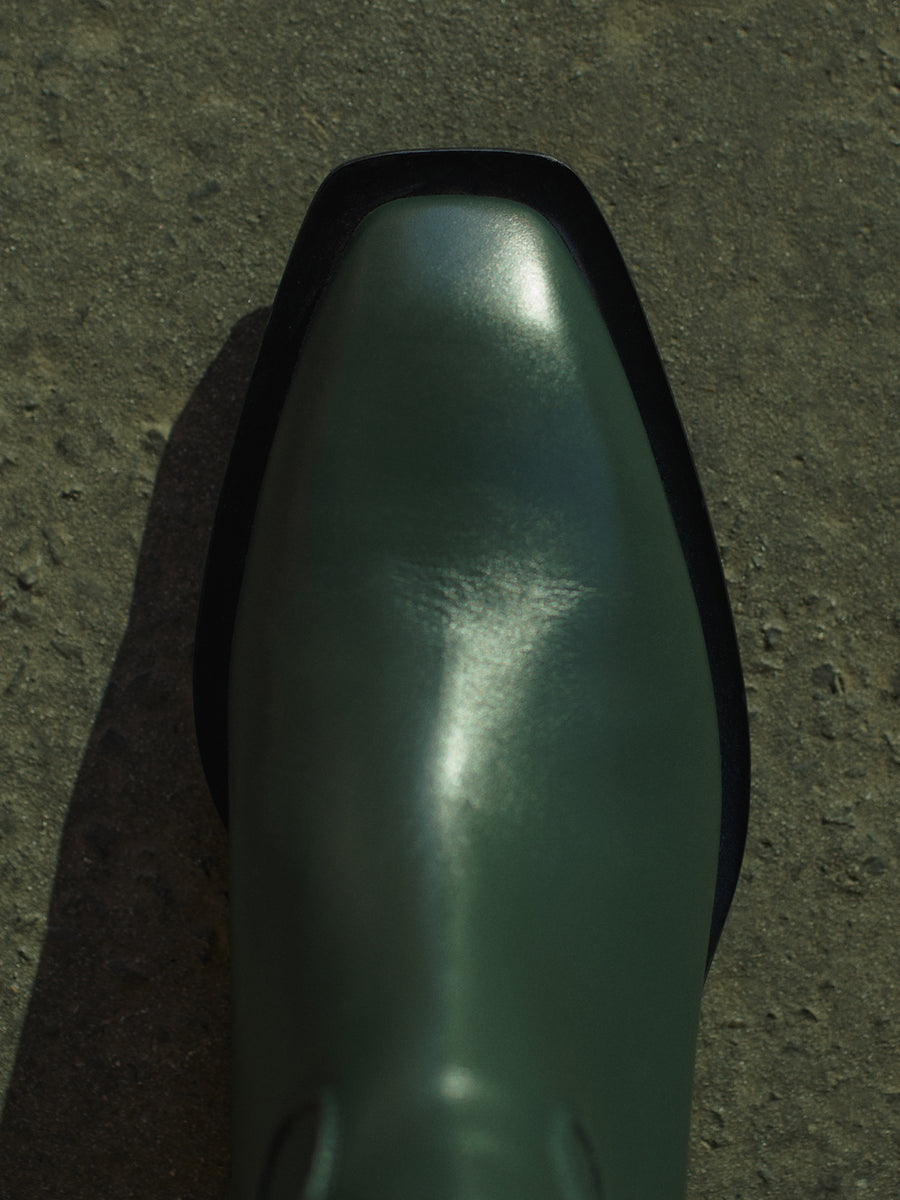 "Clean lines, asymmetry, and a stripped-down aesthetic are elements of Neues Bauen architecture adopted and applied across our entire design system, and are discernible in the angular rand, sharp square toe, and minimal form of our new cowboy edit."