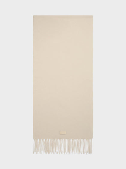Bela is Aeyde's classic scarf, made from soft cashmere with fringe detailing and a brand-embossed leather label.