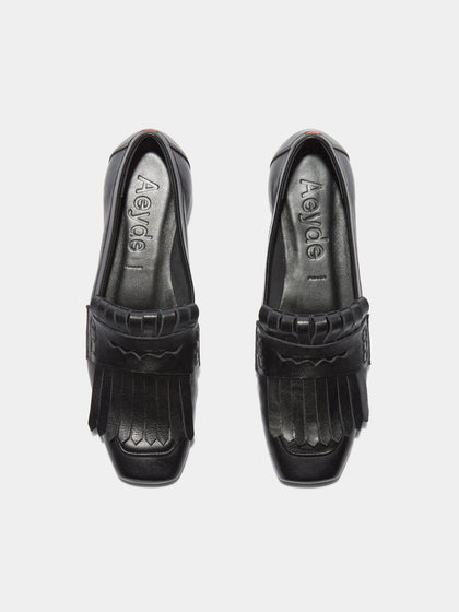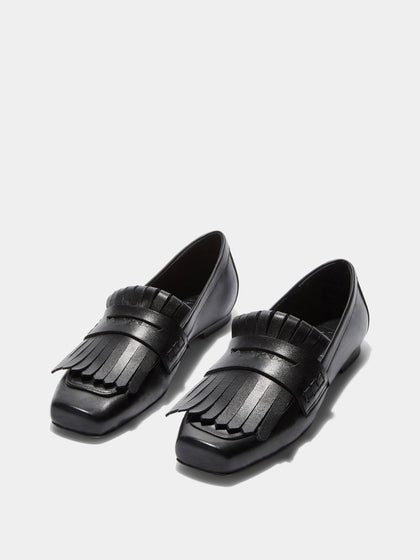 Belen is an update on the traditional loafer, combining clean contours with kilted fringe detailing and a soft square toe.