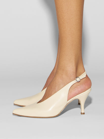 Blending a bold ’80s-inspired silhouette with a supple leather finish, Carla delivers confidence in spades. Defined by high-cut sides and a tall stiletto heel.