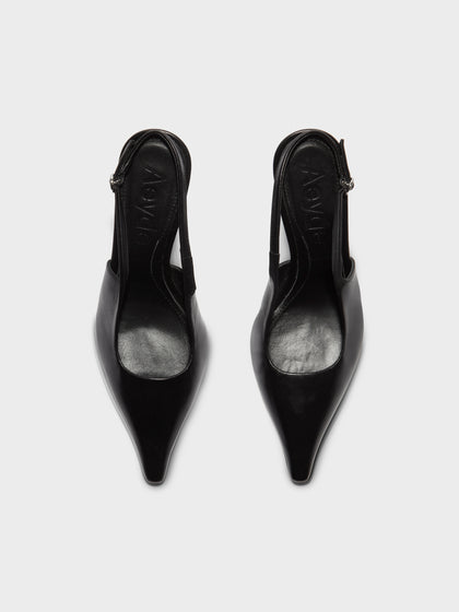 Fernanda is Aeyde's elegant chisel-toe pump featuring tapered mid-height heels, adjustable slingback straps, and bespoke anti-slip soles.