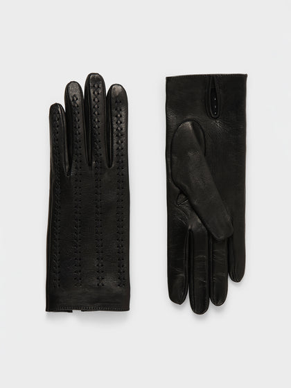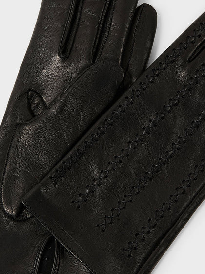 Ginny is a soft leather glove defined by our signature edge—rows of precise crisscross stitching run from fingertip to wrist.