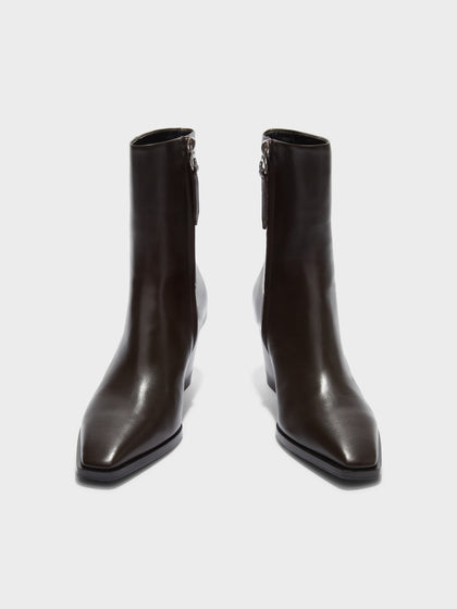 Hedvig is a fitted ankle boot with a softly squared-off toe, set on our new cowboy heel. A modern update with a streamlined edge.