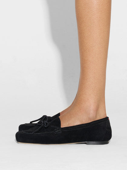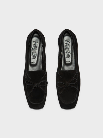 Jasper is richly detailed, featuring a square toe, hand-stitched accents, and a bow on the vamp. Sculpted in soft, tactile suede.