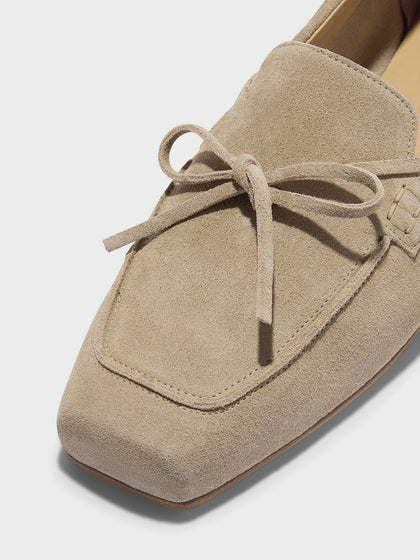 Jasper is richly detailed, featuring a square toe, hand-stitched accents, and a bow on the vamp. Sculpted in soft, tactile suede.