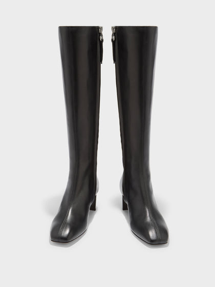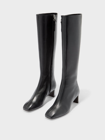 A simple silhouette with our signature edge. Marty rests on a low heel, hugging the calf and exuding effortless style.