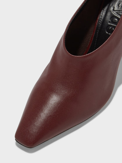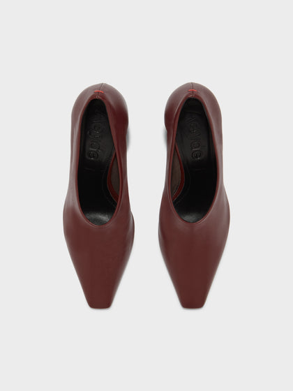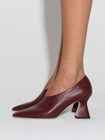 Nova’s edgy square toe and dramatically high vamps add a modern edge to the classic pump  shape.  The flared heel elevates the design further adding a new dimension to the style. This style is crafted from nappa leather.