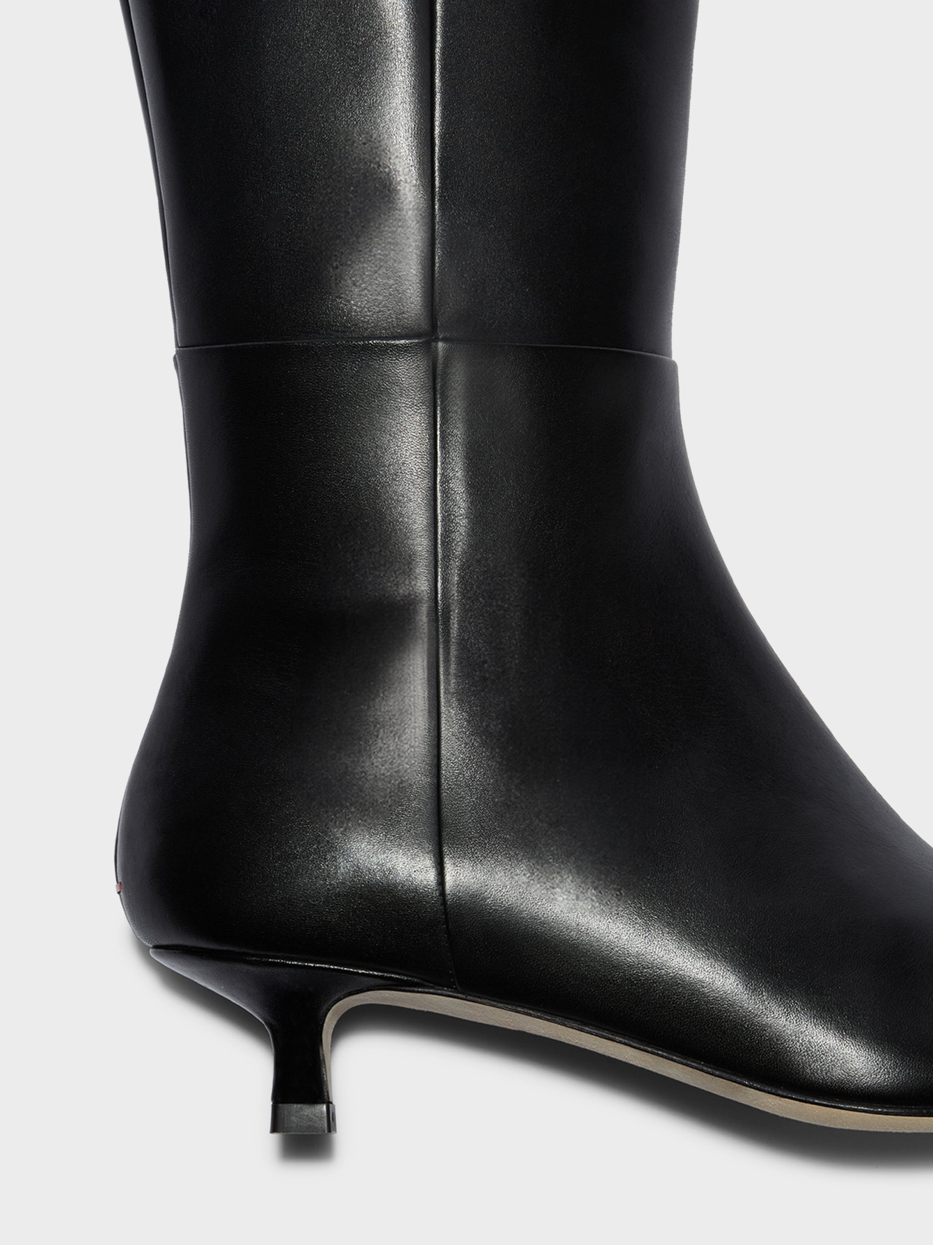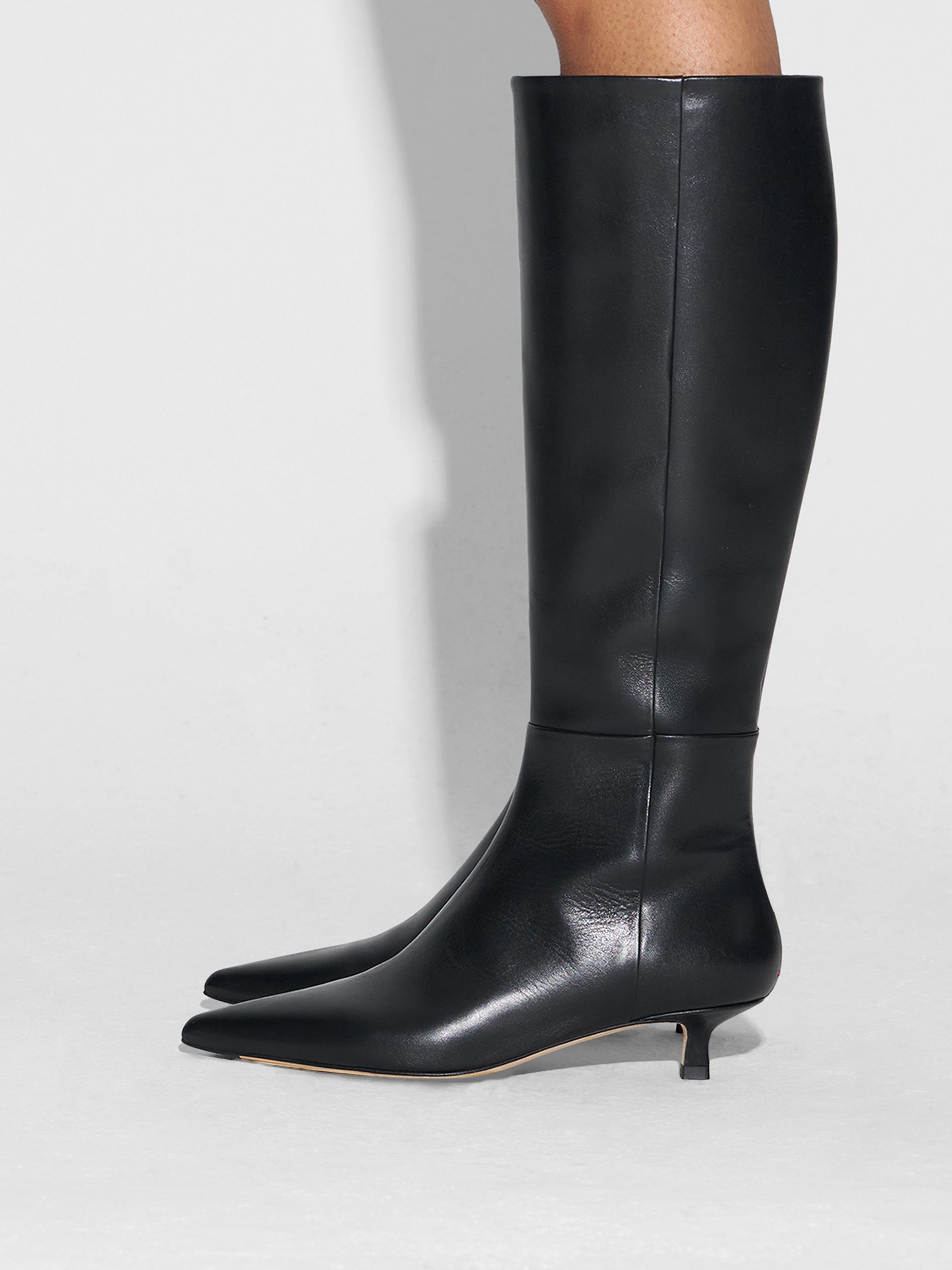 Sabrina is a fitted boot balanced on a delicate kitten heel, finished with a pointed toe for a touch of elegance.