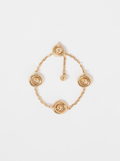 Shelley is the delicate chain bracelet punctuated by metal rings with a spherical natural stone or metal center. The style is fastened with a snap hook closure and has two width options. All Aeyde jewelry is handcrafted from upcycled 18k gold or silver palladium-plated brass. Made in Italy.