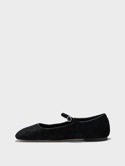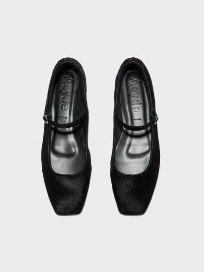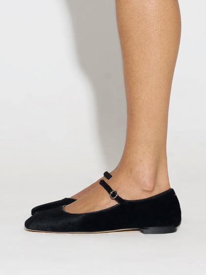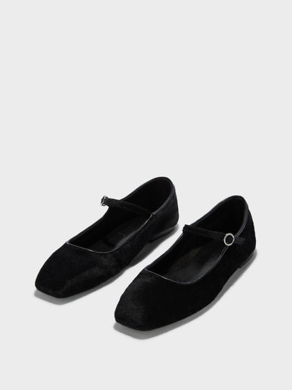 Uma is our iconic Mary-Jane flat, now in tactile pony hair. The classic style is taken to a contemporary realm with a subtly squared toe and delicate tube strap.