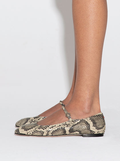 A house signature, Uma is our iconic Mary-Jane flat. The classic style is taken to a contemporary realm with a subtly squared toe and delicate tube strap.